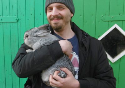 Farmteam Auf der Farm arbeiten Pädagoginnen und Pädagogen, Ehrenamtliche, FÖJler, Küchen- und Büropersonal, Maßnahmenteilnehmer*innen (In-Job, §16i), Praktikant*innen und Anleiter*innen zusammen.