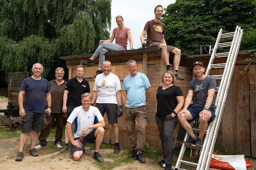 Die fleißigen Helfer:innen entrümpelten den Hüttenbau, lackierten die Fenster des Farmhauses neu und sorgten dafür, dass der Treckerunterstand nun endlich regensicher ist.